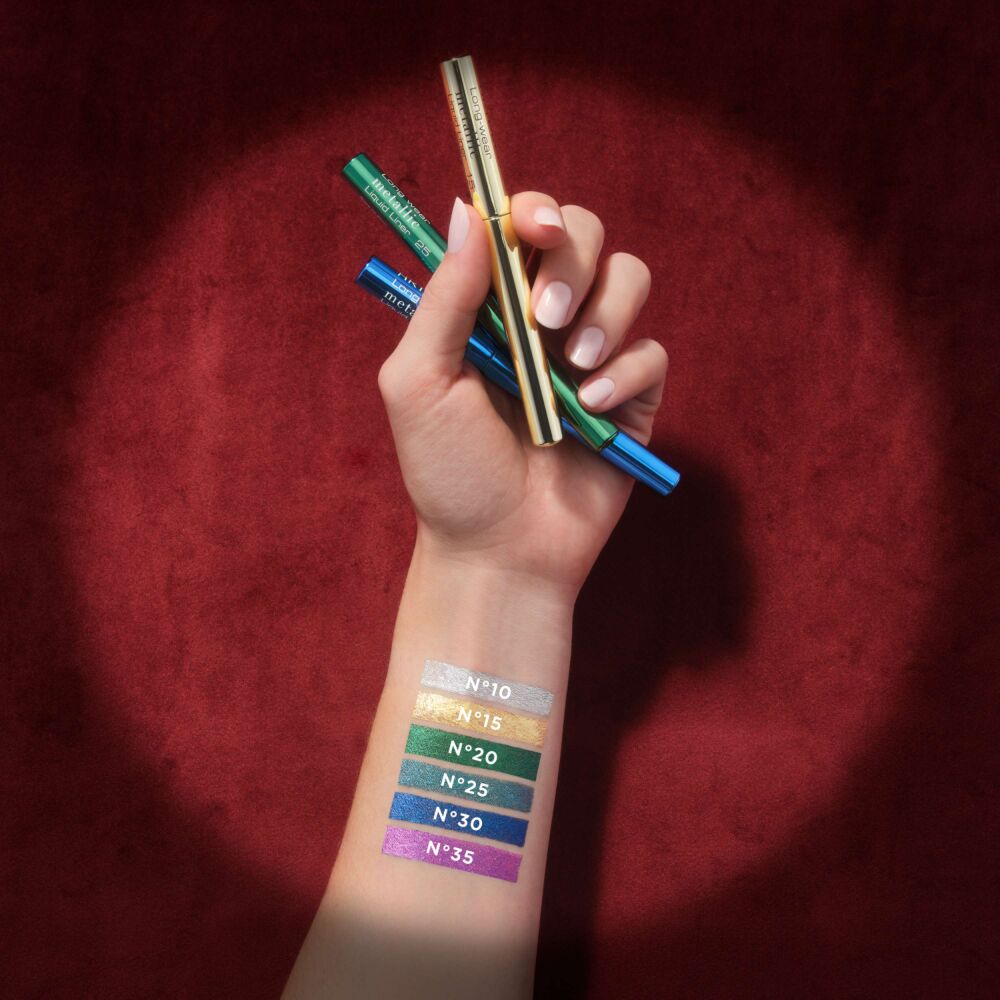 Metallik silmalainer ühendab endas intensiivse värvi, täpse pealekandmise ja erakordse vastupidavuse. Lainerit on kerge peale kanda, luues vaid ühe tõmbega särava ja pilkupüüdva tulemuse. Lainer sisaldab eriti peeneid osakesi,, mis annavad tiheda ja läikiva metallilise efekti. Spetsiaalsed kilemoodustajad tagavad veekindla, määrdumiskindla ja mittekleepuva viimistluse, mis püsib laitmatuna kuni 24 tundi – ilma pleekimise, murenemise või laialivalgumiseta. Glütseriin rikastab koostist, pakkudes maksimaalset mugavust ja elastset, kergesti hajutatavat tekstuuri, mis ei kuivata silmalauge. Peen pintsel võimaldab tõmmata nii peeneid, täpseid jooni kui ka intensiivseid, dramaatilisi kontuure.