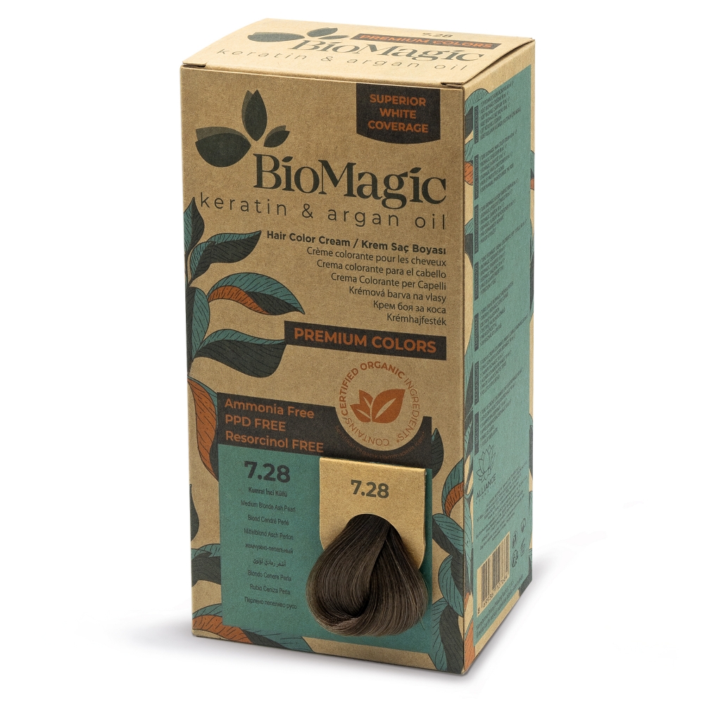 Biomagic Hair Color Cream kreemjas juuksevärv 7/28 Medium Blonde Ash Pearl 170ml