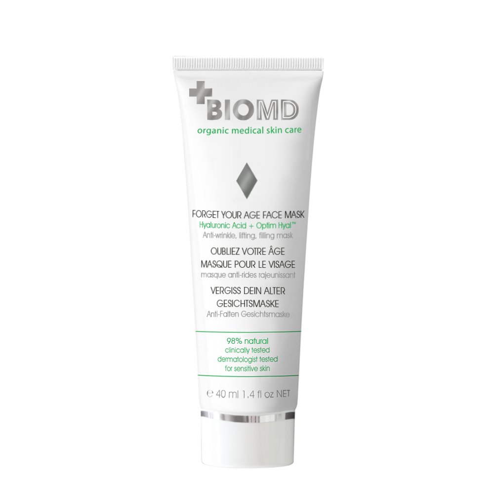 Forget Your Age näomask sisaldab suures koguses kvaliteetset hüaluroonhapet ja Optim Hyal™-i (5%). Kliinilised testid on näidanud, et peale 2 kuu kasutamist väheneb 53,4% kortsude tihedus ning 29,8% väheneb kortsude ala.