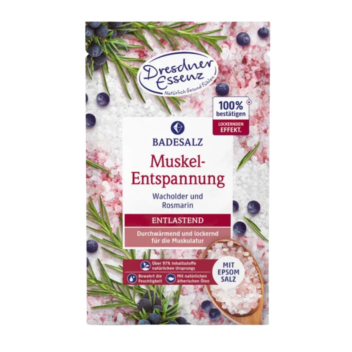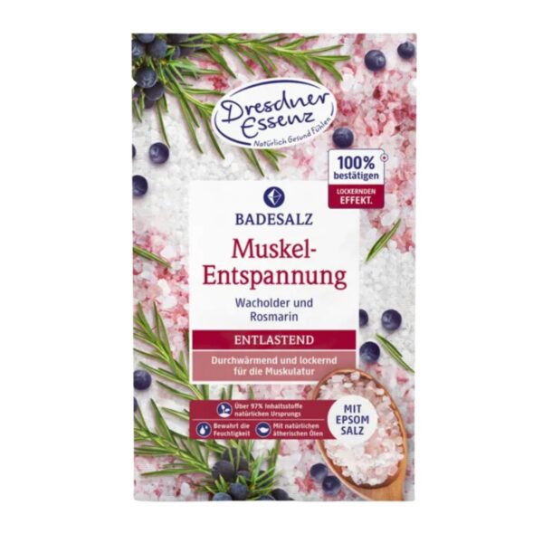 Lihaseid lõõgastav. Kadaka ja laanelille eeterlikel õlidel on lõõgastav toime, eriti pärast füüsilist tegevust ja sportimist. Eeterlikud õlid koos vee soojusega ergutavad verevarustust ja lõõgastavad lihaseid. Seesamiõli kombineerituna pantenooliga muudab naha siidpehmeks. Dresden Essenz toodetes kasutatakse naturaalseid õlisid, taimsel baasil valmistatud nahka puhastavaid toimeaineid ning naha kaitsekihti säilitavaid hooldusaineid. Toodetel on nahasõbralik pH. Ei sisalda: poluetüleenglükooli, säilitusaineid, leeliselisi seepe, naatriumvesiniksulfaati, mineraal- ja silikoonõlisid. See toode on toodetud hoolika kontrolli all ja on parima kvaliteediga.Kasutamine: tühjenda paki sisu vanni voolava vee all ja sega hoolikalt. 1 vanni kohta kulub 1 pakk vannisoola. Vannivee soovitav temperatuur on 36-38’C. Vannisoleku aeg u. 10-20 minutit. NB! Ainult välispidiseks kasutamiseks. Väldi kontakti silmadega. Hoida laste eest.