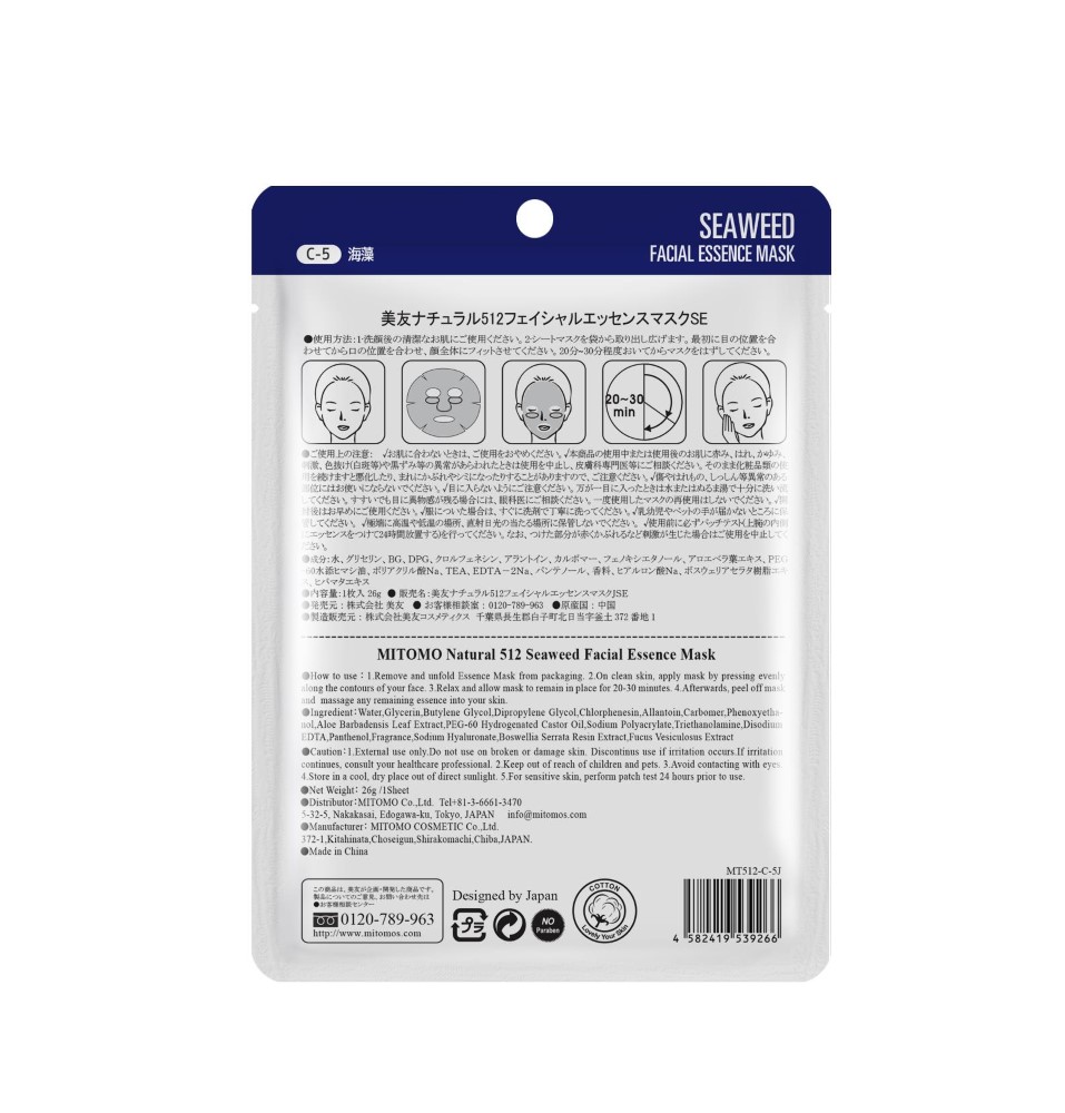 Mitomo Natural Seaweeds näomask vetikatega
